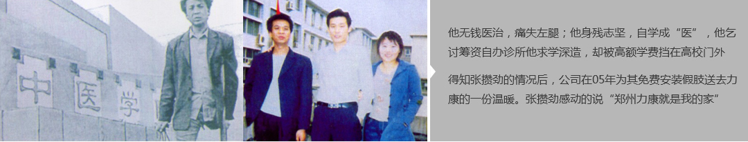 鄭州市力康假肢矯形器有限公司(簡稱力康),是一家專業從事假肢矯形器的設計、研發、制作及裝 配的專業機構。成立于1992年是河南省唯一一家福利企業。力康下設業務部、技術部、住院部、康復 部、售后服務部,并配有現代化的裝配車間和功能齊全的訓練大廳,為殘疾朋友康復訓練提供了可靠 保障??偨浝泶┐骷僦嗄?,有著豐富的臨床經驗和親身體會;多年來,力康已為全國幾十萬名殘疾 朋友安裝上舒適、美觀、耐用的假肢和矯形器具,使他們更大限度地恢復了正常的工作和生活?!爱a 品即人品”的質量理念、先進的技術、實惠的價格、完善的售后服務是力康取勝的法寶……